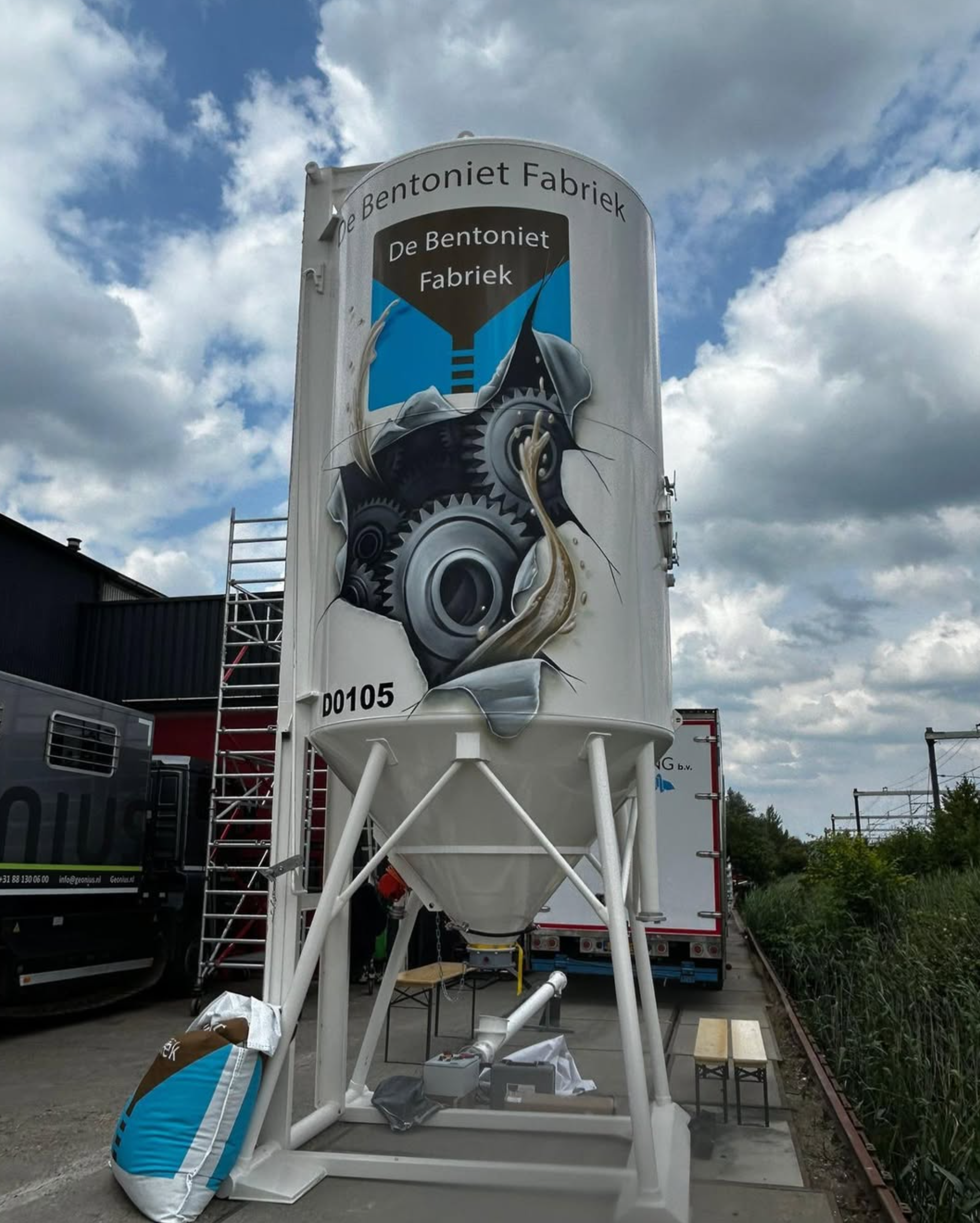 Dankzij de zon konden de kunstenaars van @graffitinetwerk buiten aan de slag! Gedurende Hét KennisEvent Ondergrondse Infra hebben zij live, onze mobiele silo voorzien van een waar kunstwerk. Wil jij deze mooie mobiele silo inzetten op jouw project? Neem contact op met Marcel Griffioen 06-20545607.